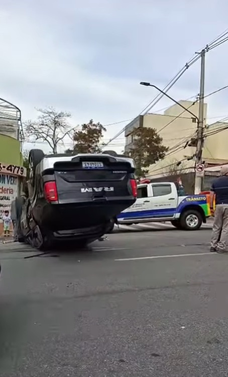 Na manhã desta sexta-feira (19), uma Dodge RAM se envolveu em uma colisão e acabou capotando na Avenida Onze de Agosto, no cruzamento com a Rua do Túnel, região do bairro Anchieta, atrás do Carrefour Vergueiro, em São Bernardo do Campo.