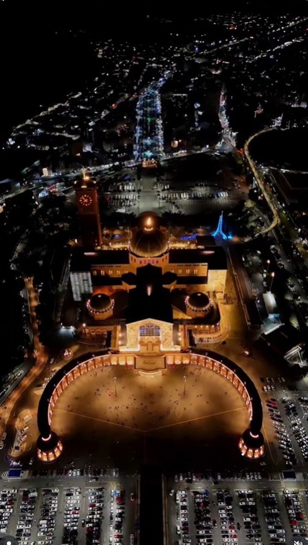 Imagens feitas por drone na noite de sábado (11), registradas por Fabiano Le Petit @dronelepetit , mostram o Santuário Nacional de Aparecida tomado por fiéis na véspera do Dia de Nossa Senhora Aparecida, celebrado neste domingo (12).
