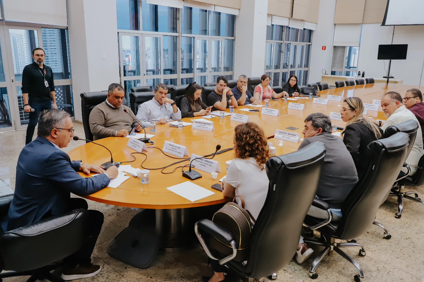 O prefeito de São Bernardo, Marcelo Lima, recebeu na tarde desta segunda-feira (13/10), no salão nobre do Paço Municipal, comissão formada por pais de alunos e o diretor da EMEB Ministro Paulo Renato Costa Souza, Jemerson Gleison Barbosa da Silva, com o objetivo de ampliar o diálogo sobre a necessidade de adequações na unidade e suspensão provisória das atividades em 2026. O encontro visou aprofundar o estudo em torno de intervenções necessárias para que a escola seja ajustada à faixa etária das crianças, uma vez que o complexo foi construído para abrigar um campus da Universidade Metodista.