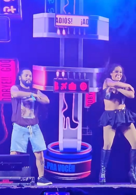 Os passos apresentados no palco, ao som da música “Tchau pra você”, são resultado de anos acompanhando a carreira da artista, desde a época da Banda Calypso. “Conforme foram saindo os DVDs da Banda Calypso eu vivia assistindo e fui aprendendo em frente a TV”, diz.