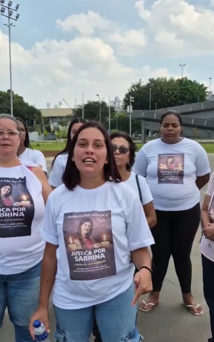 Mulheres, entre familiares, amigas e moradoras, realizaram neste sábado (21) um ato por justiça pela morte de Sabrina Cândido Pontes, de 24 anos.