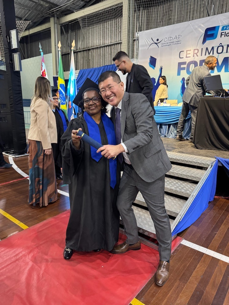 A cerimônia contou com a presença do prefeito Taka Yamauchi, do diretor-presidente da Fundação, Hilton Moreira, do vereador Juninho do Chicão, além de secretários municipais, educadores e a aluna Maria Helena dos Santos, que emocionou o público ao relatar sua trajetória de superação na turma da Melhor Idade.