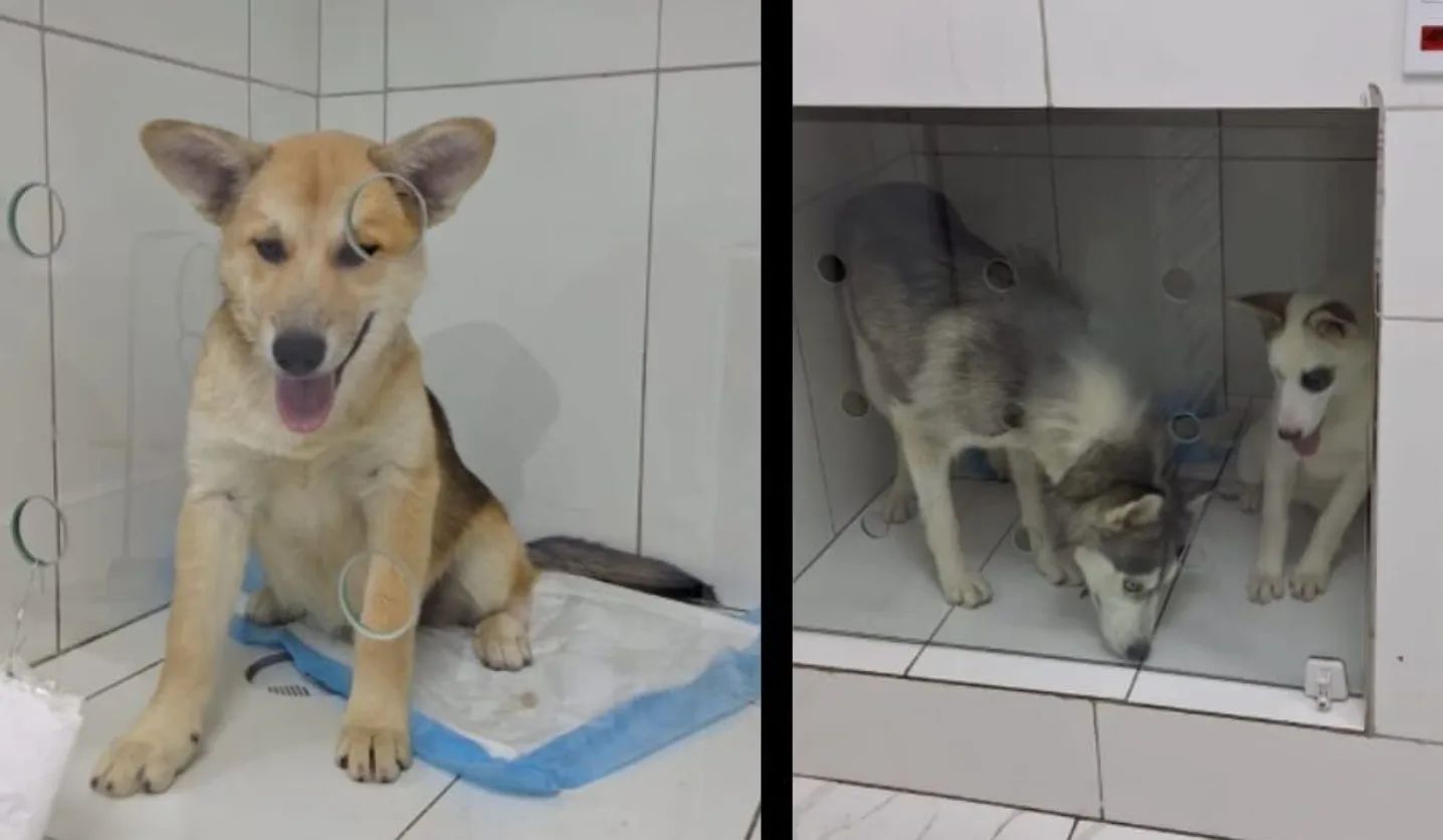 As cadelas — uma husky adulta e duas filhotes mestiças — foram levadas para uma clínica veterinária, onde exames confirmaram os maus-tratos. Agora, elas estão em recuperação e disponíveis para adoção responsável.