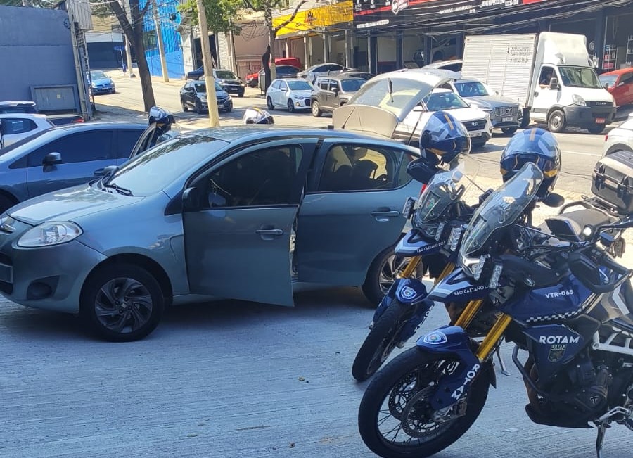 A GCM (Guarda Civil Municipal) de São Caetano do Sul, por meio da equipe especializada ROTAM, realizou uma abordagem estratégica a um veículo Fiat Palio, de cor cinza, após alerta emitido pelo CGE (Centro de Gerenciamento de Emergências) do município. O automóvel estava sob investigação por possível envolvimento em furtos de outros veículos registrados em 2023.