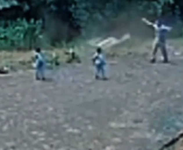 As imagens da câmera de segurança detalham o perigo: o veículo, que estava com a porta do motorista aberta, começa a ganhar velocidade na descida após uma das crianças soltar o freio de mão durante uma brincadeira.