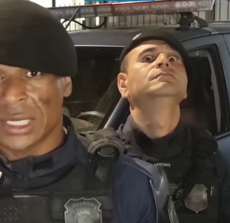 O vídeo, publicado por perfis locais, mostra o guarda identificado como Leite ao fundo de uma entrevista, mantendo expressão séria, olhar fixo e quase sem piscar. A postura chamou atenção na internet.