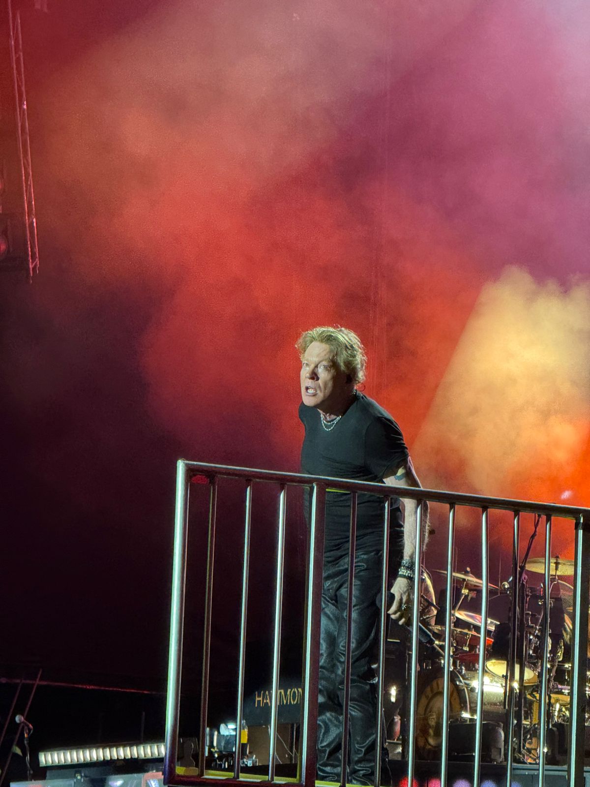 O estádio ficou lotado para ver Axl Rose, Slash e Duff McKagan, que seguem na estrada com mais de 60 anos e ainda demonstram fôlego e carisma no palco. A banda abriu com Welcome to the Jungle e embalou o público com clássicos como Live and Let Die, Don’t Cry, Sweet Child O’ Mine e Paradise City.