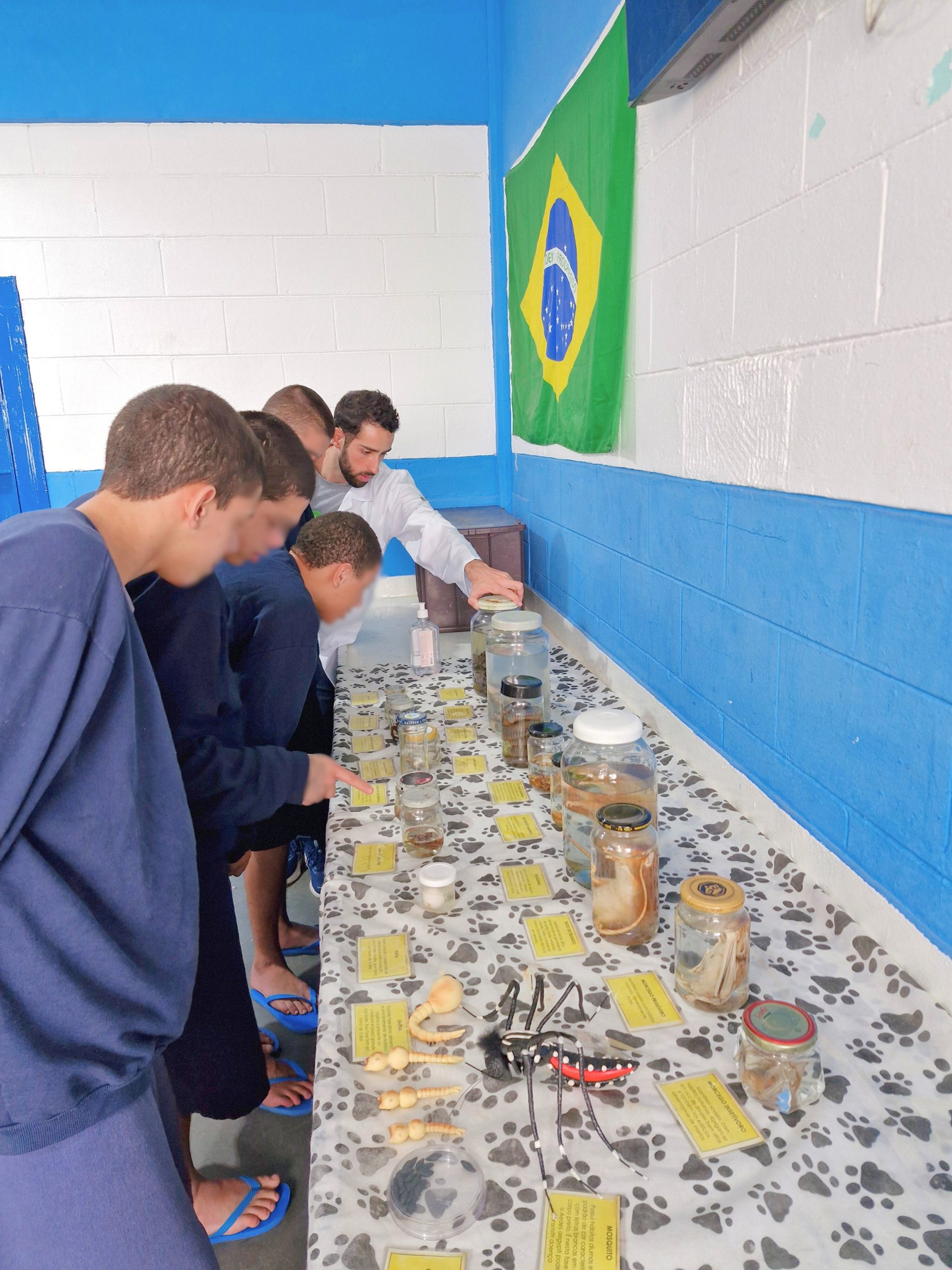 Uma das atividades que mais chamou a atenção dos participantes foi a demonstração de algumas espécies que podem ser vetores de zoonoses, permitindo que os jovens observassem de perto os animais e fizessem perguntas, reforçando o aprendizado de maneira prática e envolvente.