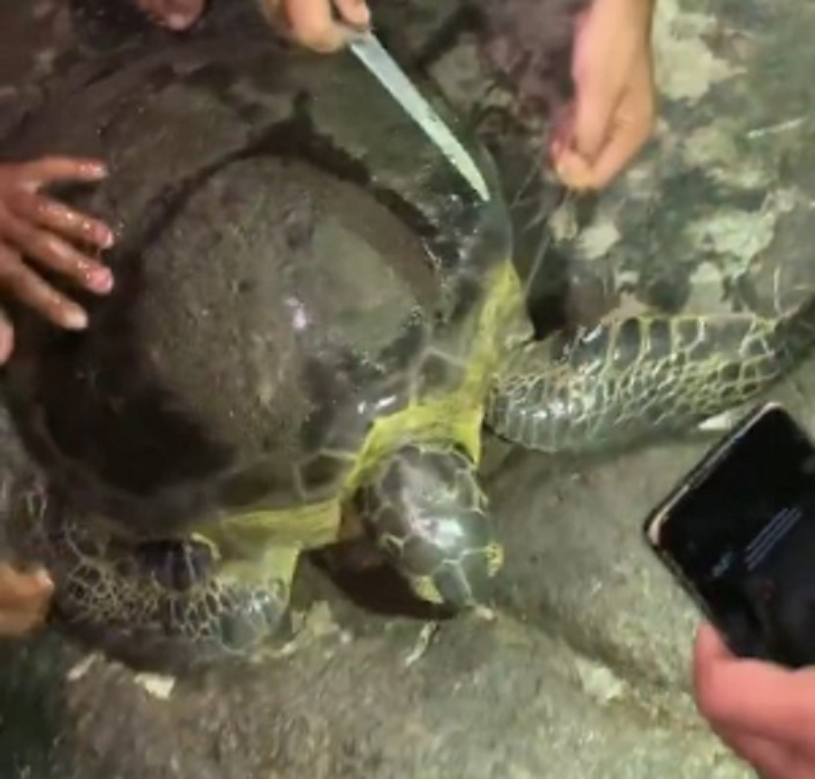 Um vídeo que circula nas redes sociais neste sábado (05/04) mostra o momento em que um grupo de jovens se deparou com uma tartaruga marinha presa em uma rede de pesca em uma praia do Rio de Janeiro.
