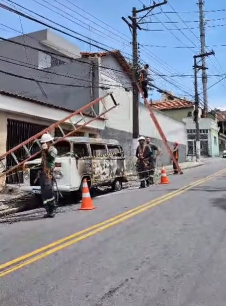 Uma Kombi pegou fogo na manhã desta quinta-feira (29) na Rua MMDC, altura do número 1033, no bairro Paulicéia, em São Bernardo do Campo.