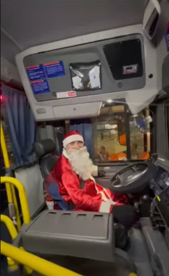 Durante o trajeto, os passageiros notaram que o motorista do ônibus estava vestindo uma roupa de Papai Noel enquanto conduzia o coletivo. A caracterização chamou a atenção de quem utilizava a linha.