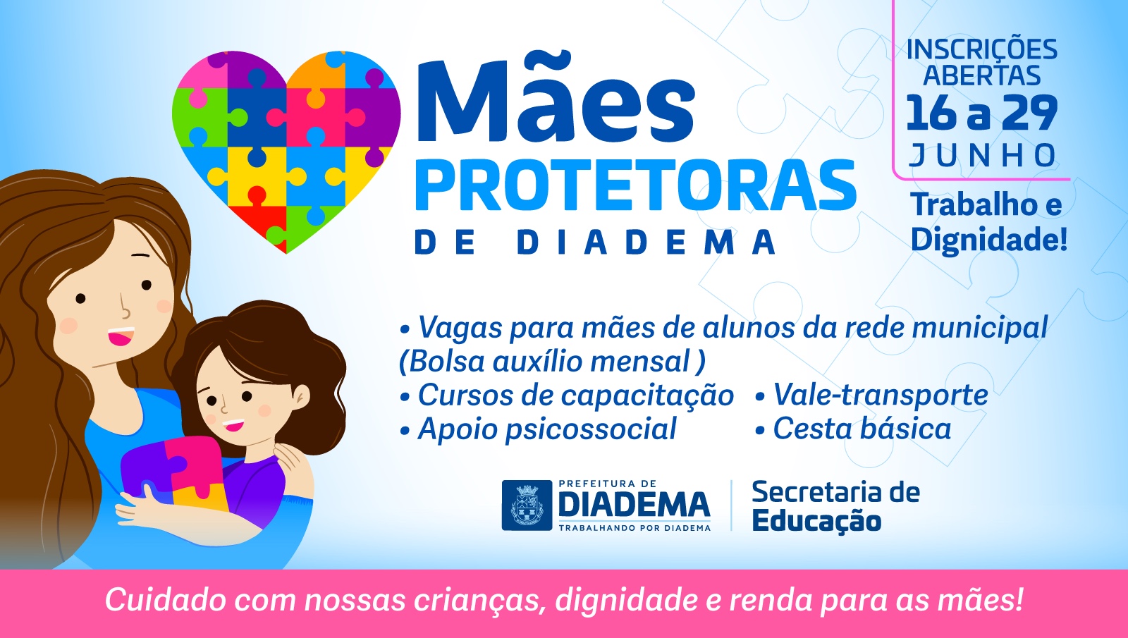 Além da bolsa, as Mães Protetoras terão acesso a cursos de capacitação, apoio psicossocial e orientação profissional. As inscrições estão abertas até 29 de junho de 2025, exclusivamente pelo site: https://maesprotetoras.diadema.sp.gov.br.