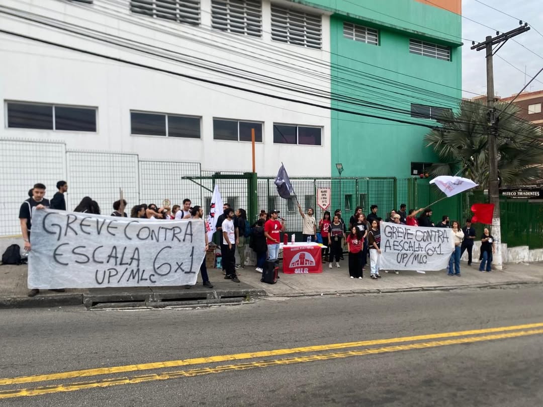 Na manhã desta terça-feira (2), um grupo realizou uma manifestação em frente ao supermercado Joanin, na Rua Tiradentes, 1701, Santa Terezinha, em São Bernardo do Campo. Os participantes exibiram faixas contrárias à escala de trabalho 6×1, utilizada no setor, e distribuíram materiais para quem passava pelo local.