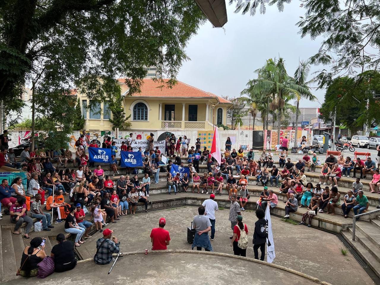 Diversos grupos e entidades participaram do ato, incluindo estudantes secundaristas, membros da ARES.