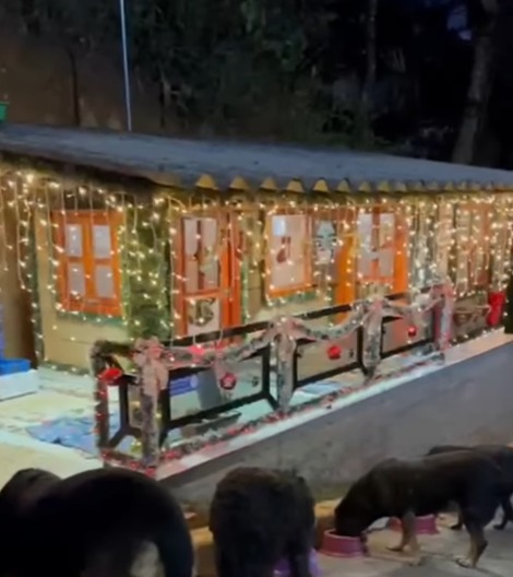 A casa ganhou enfeites natalinos e luzes, deixando o ambiente ainda mais aconchegante para os cães que moram no local. Hoje, são nove cachorros vivendo ali: Maya, Neguinha Peluda, Frozen, Negona, Bella, Mike, Neguinho, Tico e Teco.