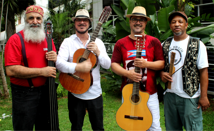 Mayombe Afro Latino é formado por Jara Arrais (violão e voz), Sergio Turcão (contrabaixo e voz), Ademar Farinha (três cubano e voz) e Afonsinho Menino (percussão).