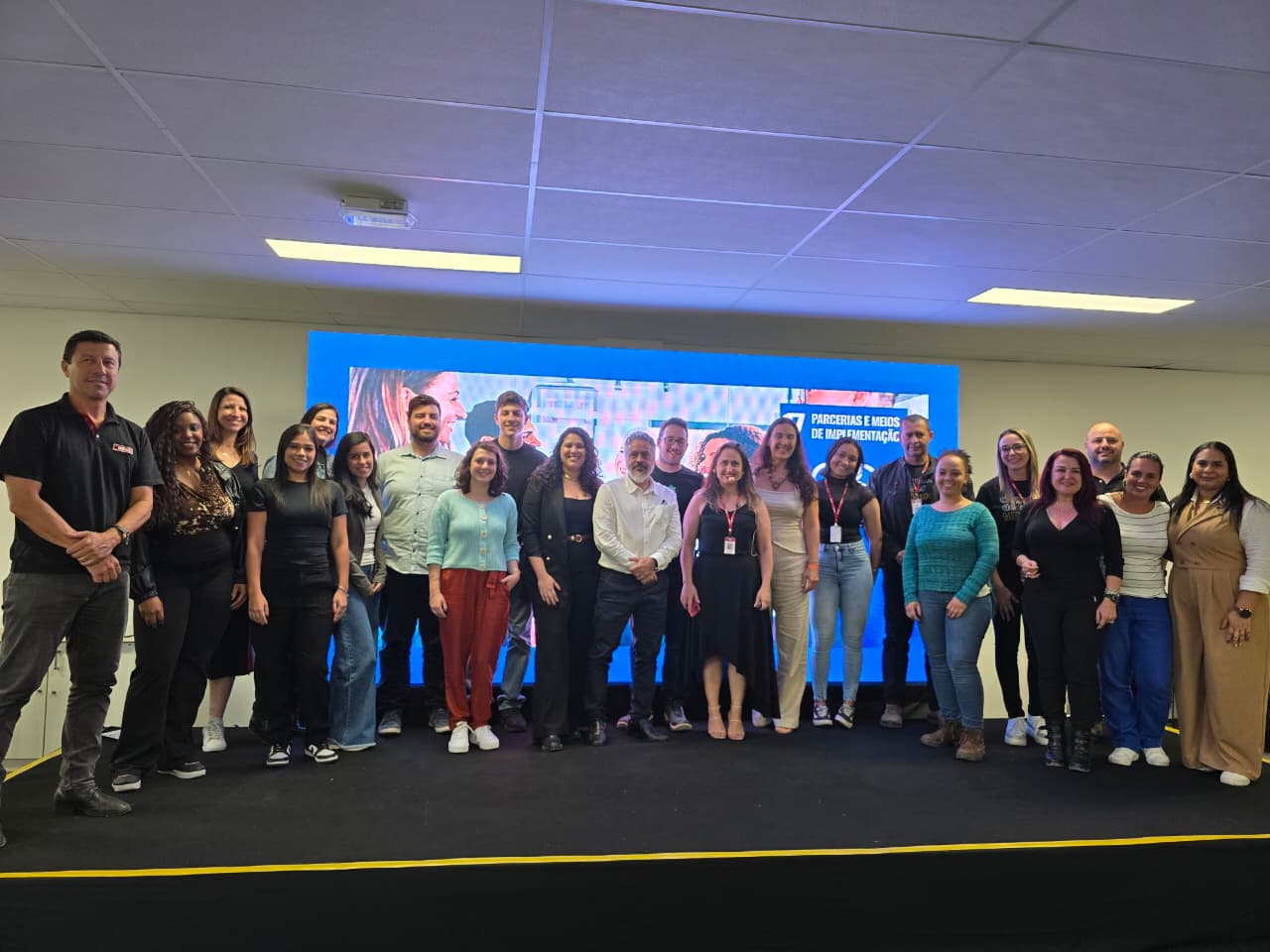 No auditório, o evento seguiu com um momento de reintegração conduzido pelas colaboradoras do RH, Carolina Farinazzo e Larissa Lopes, que apresentaram os benefícios oferecidos pela empresa, como descontos na compra de imóveis MBigucci e o programa Total Pass, entre outros.