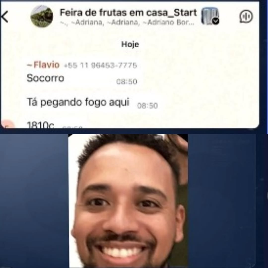 “Socorro, tá pegando fogo aqui.” A mensagem foi enviada por Flávio Araújo Vieira, de 46 anos, em um grupo de moradores do condomínio onde vivia, momentos antes do apartamento ser consumido pelas chamas. As informações foram reveladas pelo SBT.
