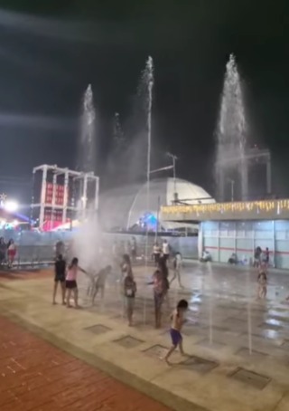 A fonte interativa fica na Esplanada do Paço Municipal e funciona de forma gratuita, sendo uma opção de lazer para o verão.