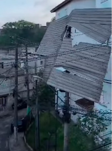 Moradores da Rua Valdomiro Rodrigues, no Parque São Bernardo, estão sem energia desde a noite de sexta-feira (11) depois que um telhado foi arremessado pela tempestade e ficou preso na fiação elétrica. Os bombeiros foram acionados, mas informaram que a remoção só poderia ser feita pela Enel, que ainda não enviou uma equipe ao local.