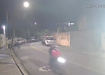 Câmeras de segurança registaram o momento em que a dupla em uma moto visualiza uma outra motocicleta estacionada na rua e tenta subtraí-la. O garupa desce do veículo, tenta ligar, mas não consegue. Diante de várias tentativas sem sucesso, os indivíduos foram embora sem levar nada.