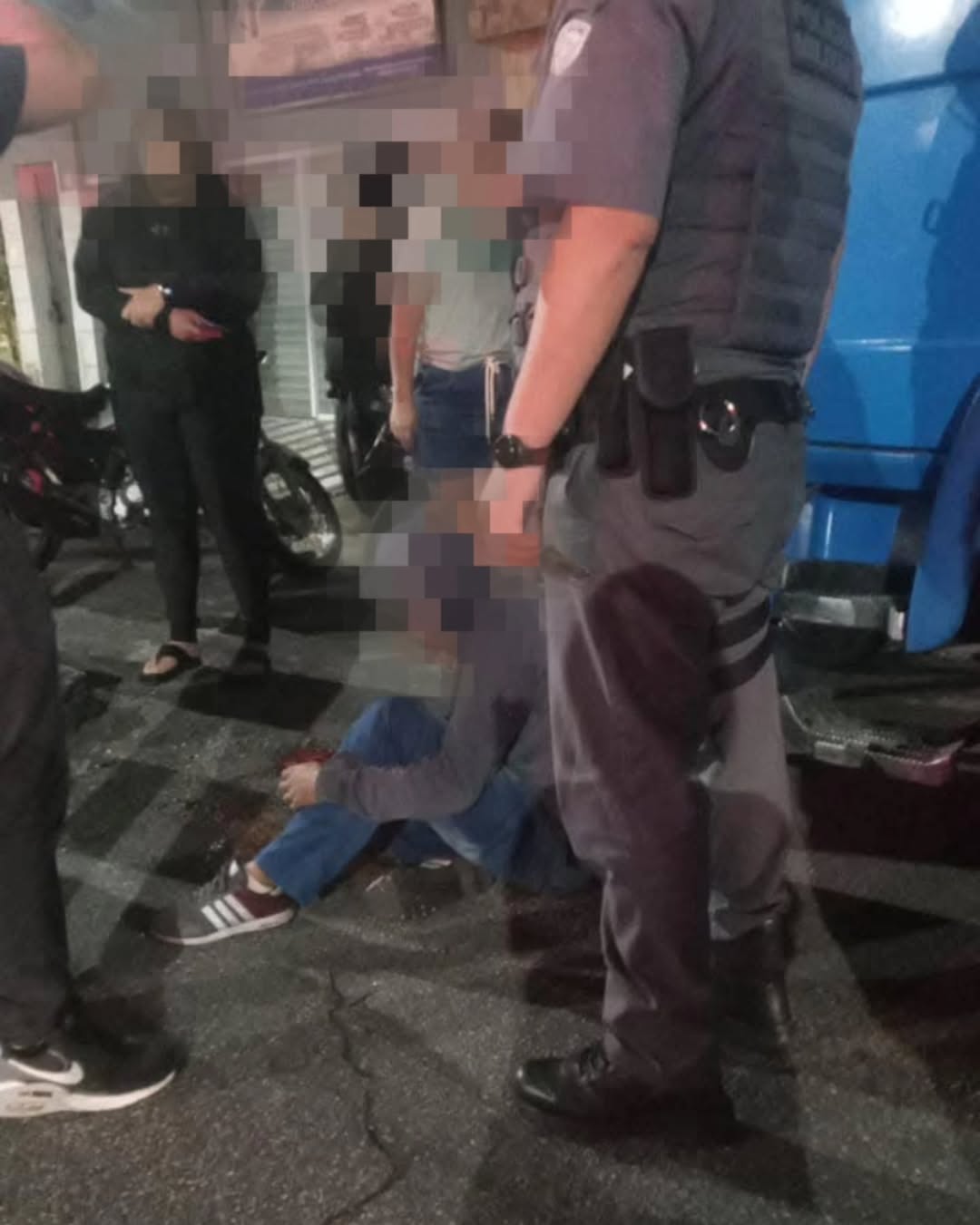 O criminoso preso estava com uma moto de placa adulterada. Ele foi levado ao hospital devido aos ferimentos e depois encaminhado à delegacia, onde foi indiciado por tentativa de roubo e adulteração de veículo.