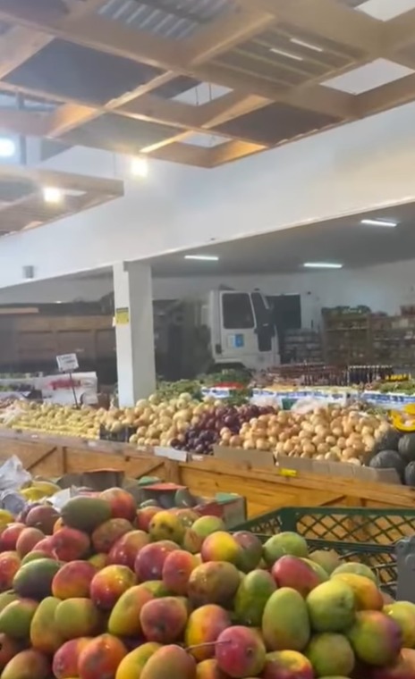 Após o acidente, ele parou em frente ao hortifruti Armazém da Roça. Funcionários pediram para que retirasse o caminhão, mas o homem se irritou, puxou uma barra de ferro e passou a ameaçá-los. Na sequência, entrou com o veículo dentro do comércio, que estava em funcionamento.