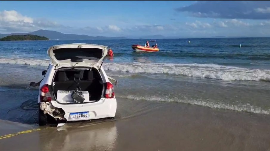 De acordo com a corporação, um carro trafegava em alta velocidade na rodovia SC-401, realizando manobras arriscadas. Os agentes deram ordem de parada, mas o condutor fugiu, atravessando cruzamentos e trafegando por calçadas até abandonar o carro na faixa de areia da praia e se atirar no mar.