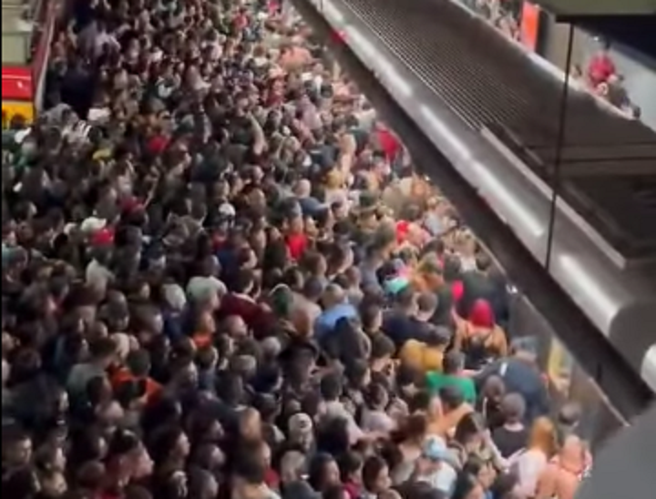 A volta para casa foi marcada por superlotação e transtornos nesta sexta-feira (24), véspera do feriado de aniversário de São Paulo. Vídeos mostram a estação Sé tomada por passageiros enfrentando dificuldades para embarcar nos trens do Metrô após as fortes chuvas que atingiram a capital.