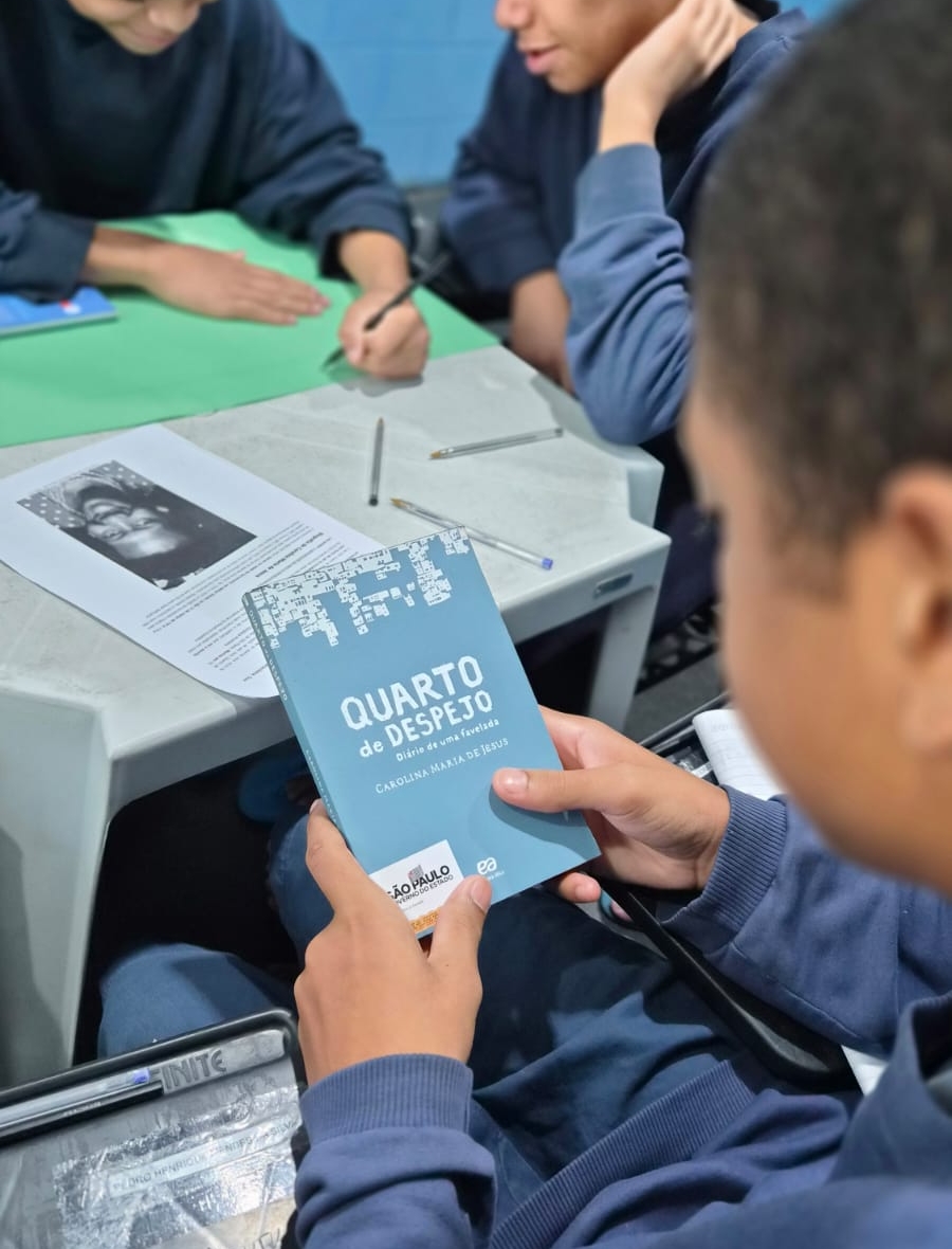 O espaço onde acontece o sarau está ainda repleto de cartazes com biografia, imagens e representações ilustrativas da favela do Canindé, em São Paulo, onde viveu Carolina Maria. Familiares dos jovens foram convidados a participar, além de poderem conferir a produção visual no espaço socioeducativo durante a visita semanal.