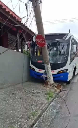 Na tarde desta quinta-feira (18), um ônibus da linha 02 – Taboão bateu em um poste na Rua Dezessete de Março, na região da Pauliceia, em São Bernardo do Campo.