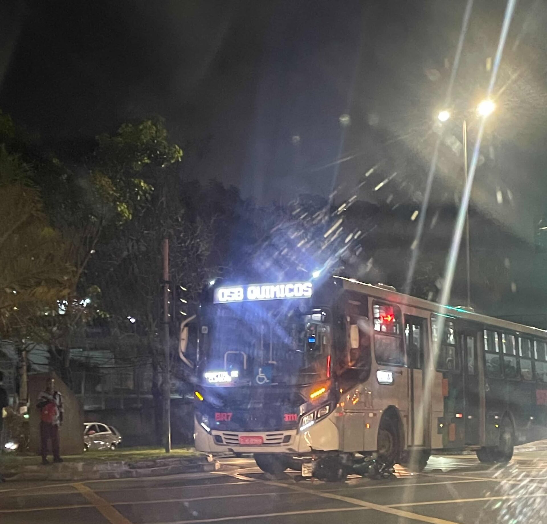 Ainda não há informações confirmadas sobre o estado de saúde do motociclista. Equipes de resgate foram acionadas. Os passageiros do coletivo desembarcaram após o fato.