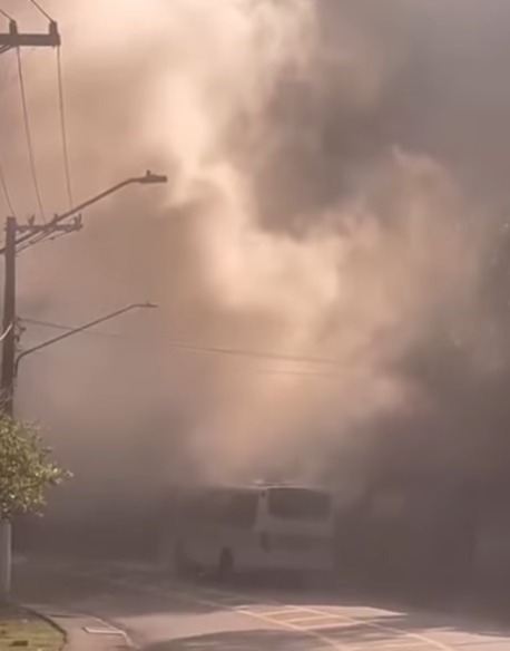 Um ônibus escolar começou a pegar fogo na manhã desta quinta-feira (11), por volta das 8h15, no Riacho Grande, em São Bernardo. O caso aconteceu na Estrada do Rio Acima, 1187, próximo ao Recanto, na entrada da Vila Pelé.