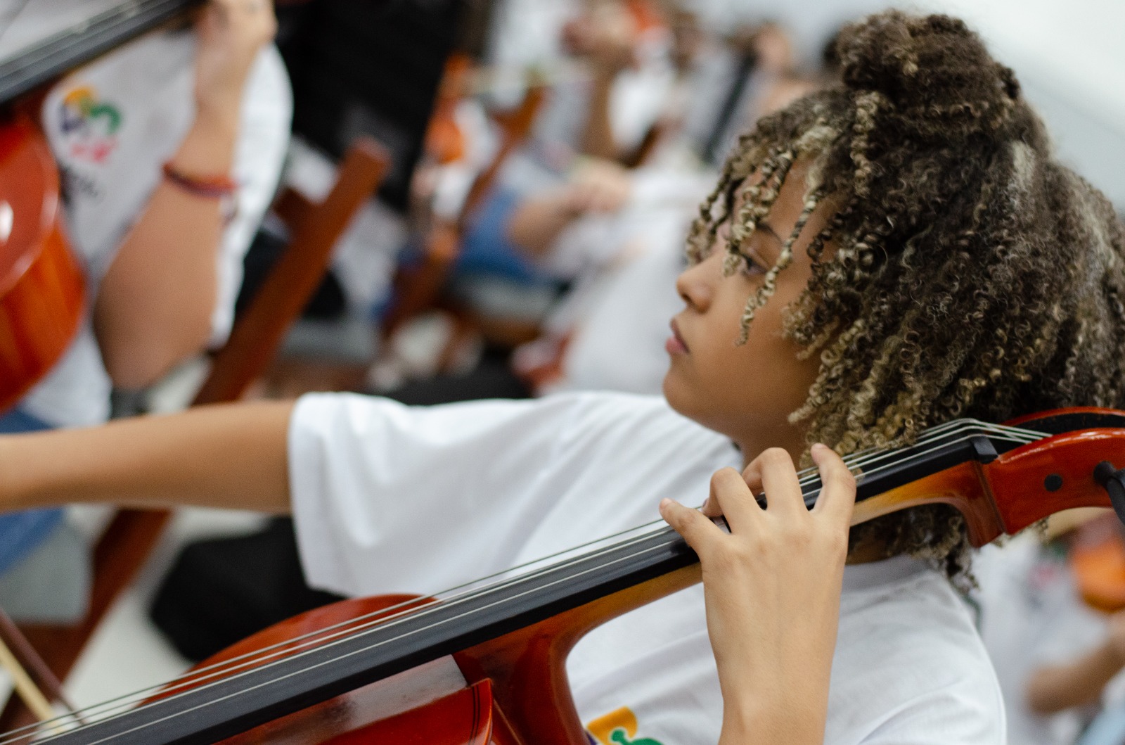 Alunos do projeto que ensina violino, violoncelo e canto coral para crianças e adolescentes vão tocar às 10h, na plataforma do Expresso Turístico