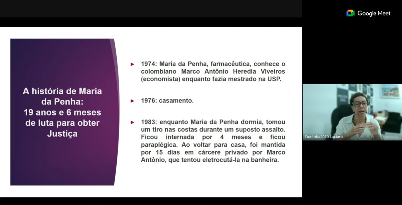 O encontro contou ainda com a participação da delegada titular da Delegacia da Mulher de São Caetano, Luciara de Cássia Campos, fortalecendo a integração entre educação e segurança pública no enfrentamento à violência. Doutora Luciara trouxe dados globais de violência contra mulher, destacou a importância da Lei Maria da Penha e relatou os canais de atendimento às vítimas.