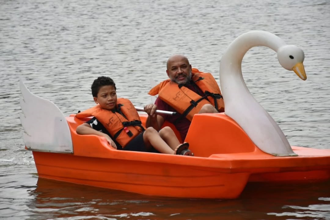 Santo André, 28 de abril de 2025 – Um reencontro ao passado que já dura 40 anos. Foi assim que a andreense Edna Vieira dos Santos passeou, pela primeira vez, no novo pedalinho do Parque Natural do Pedroso, que, na verdade, já não é tão novo assim, pois a reinauguração do equipamento está completando um ano nesta segunda-feira (28). Com 15 anos de idade, a moradora do Recreio da Borda do Campo, região da Unidade de Conservação, se aventurava na saudosa pequena embarcação, que foi um marco turístico em Santo André entre as décadas de 70 e 80.