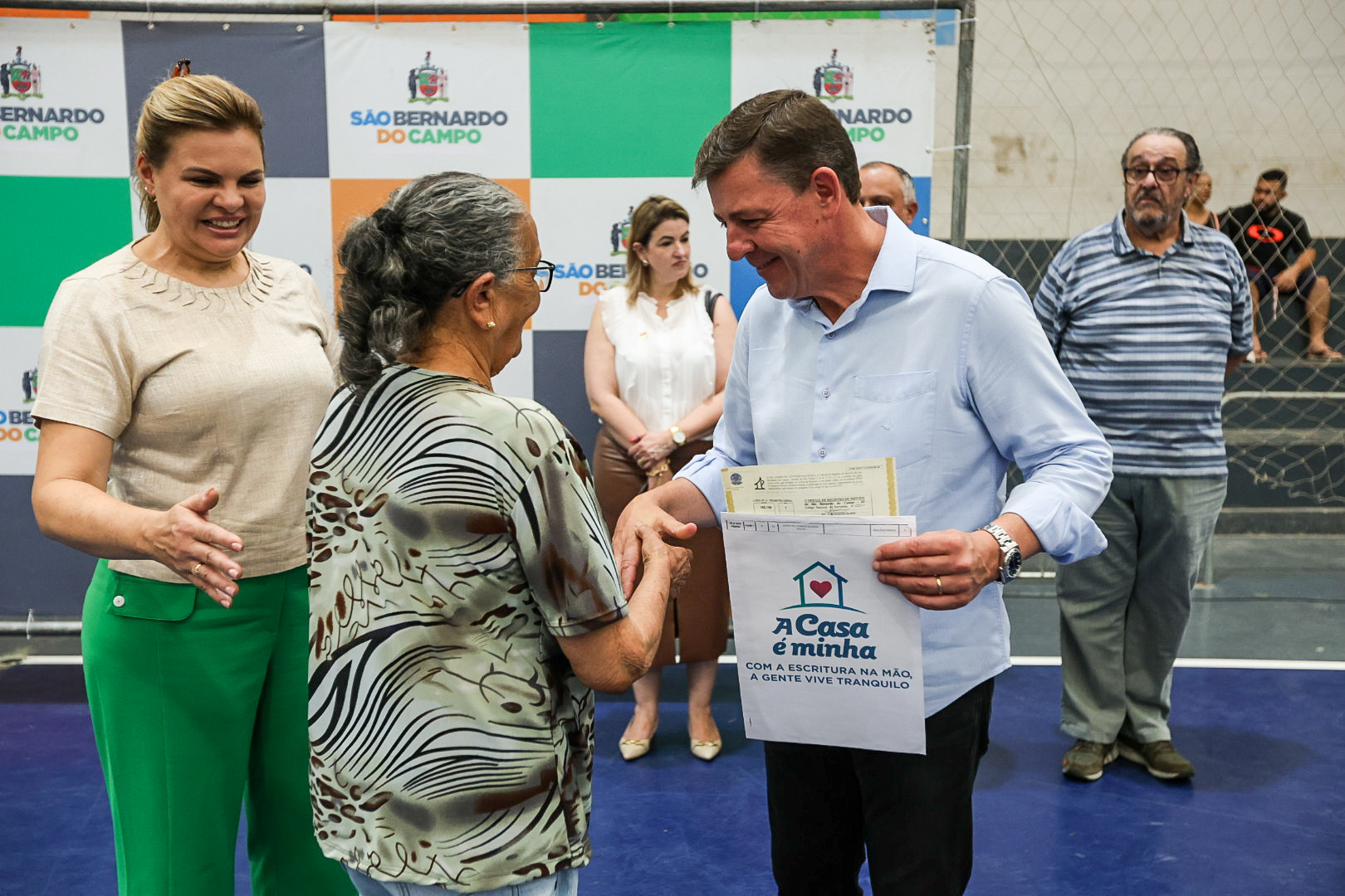 MAIS DE 50 MIL ESCRITURAS ENTREGUES – Até o final de 2024, a Prefeitura terá concluído a entrega de escrituras a mais de 50 mil famílias de São Bernardo, sem qualquer custo para os moradores. Além dos títulos já entregues, a Administração iniciou a regularização fundiária nos bairros Jesus de Nazaré I e II, Vila São Pedro (2ª etapa), Jardim João de Barro e Vila União.