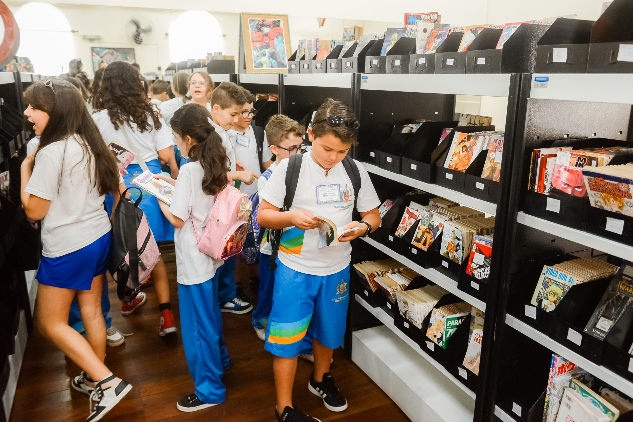 Na estreia do projeto, estudantes do 5º ano da EMEB Júlio de Grammont, localizada no Planalto, visitaram a Gibiteca Municipal Eugênio Colonnese, recém-inaugurada em sede própria na região central. A atividade envolveu leitura, contação de histórias e interação com o acervo de gibis, em uma experiência lúdica e educativa.