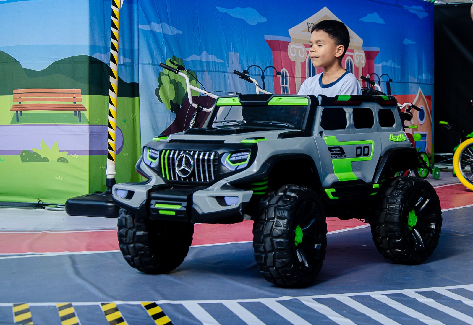 Montado nas quadras das escolas, o circuito simula uma pequena cidade, com faixas de pedestres, semáforos, placas de sinalização, ruas, calçadas e uma mini praça central. As crianças participam como pedestres, ciclistas e motoristas de carrinhos, interagindo com personagens que representam agentes de trânsito e monitores.