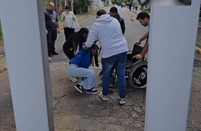 O momento foi registrado pelo vereador Renan Queiroz, que acompanhava a movimentação no local. A estudante, visivelmente nervosa, precisou até de uma cadeira de rodas.