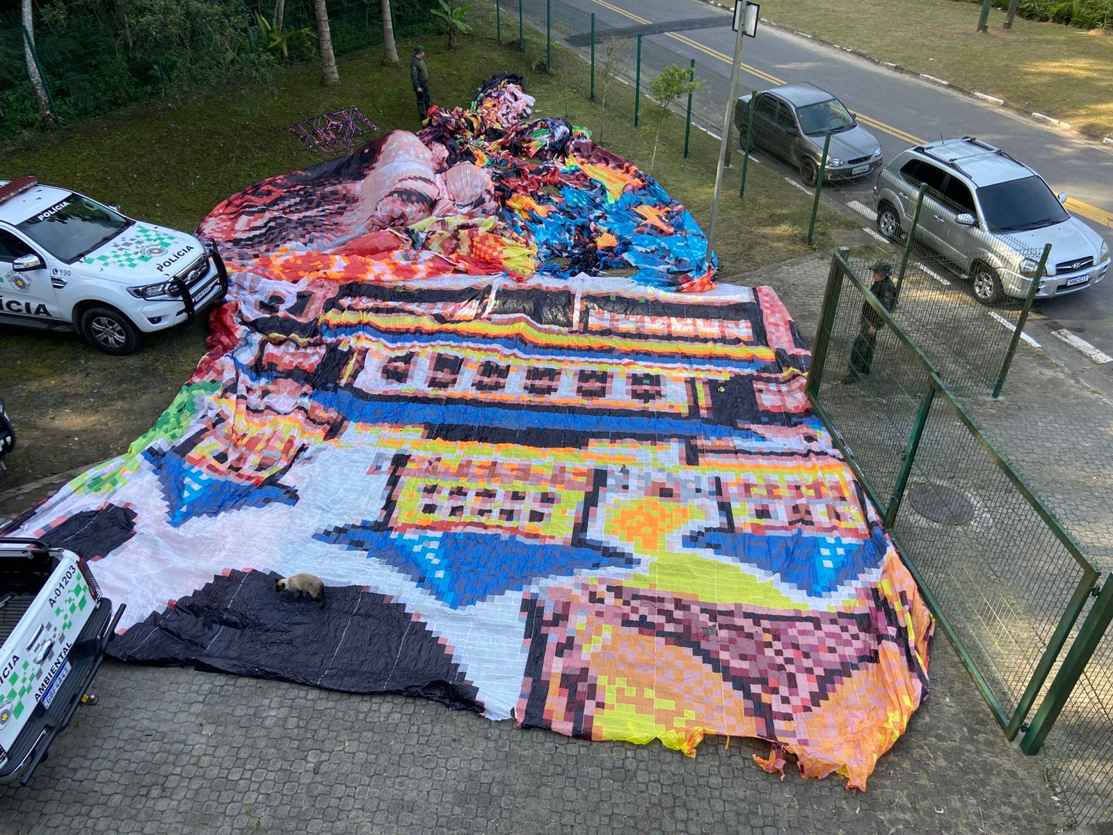 O balão, considerado de grande porte – com aproximadamente 20 metros –, foi recolhido na área de mata e levado para a 2ª Companhia da Polícia Militar Ambiental.