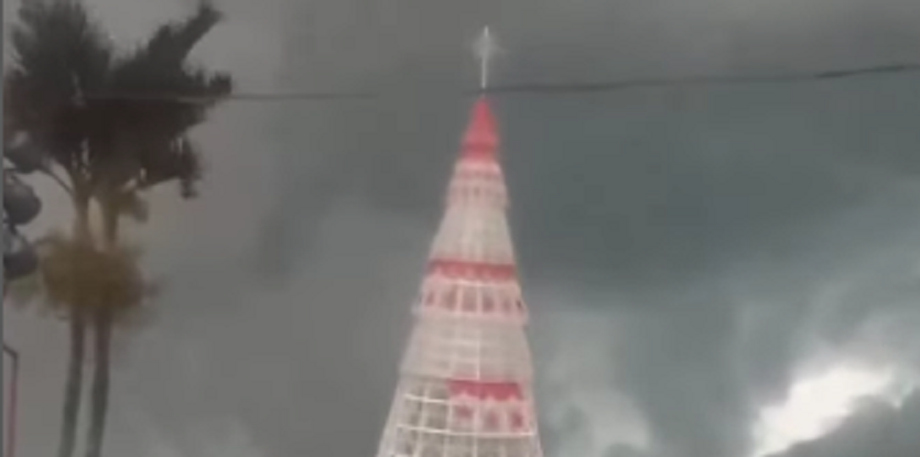A montagem da árvore acontecia para a inauguração, programada para esta terça-feira (17), que também contaria com a apresentação do espetáculo Águas Dançantes. Vídeos divulgados nas redes sociais mostram o momento em que uma ventania intensa derruba a estrutura, atingindo os trabalhadores que estavam no local.