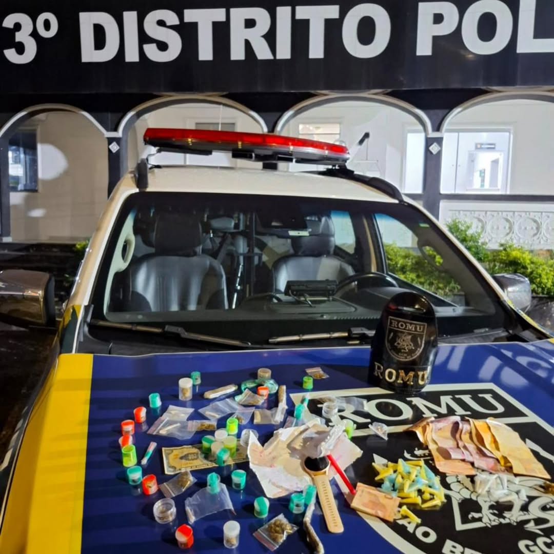 Na abordagem, os agentes encontraram anotações relacionadas ao tráfico. A pochete foi recuperada e continha 54 porções de maconha, 14 pinos de cocaína, 34 porções de crack e R$ 136,60 em dinheiro. O material foi apreendido e encaminhado para perícia, que confirmou a natureza ilícita das substâncias.