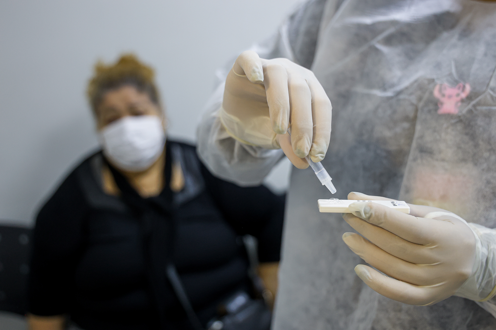 O teste é realizado a partir de material coletado do nariz com um cotonete. O resultado sai em, no máximo, 15 minutos. Em caso positivo, o paciente recebe uma pulseira roxa e é encaminhado para o consultório médico para avaliação, prescrição de medicação e, dependendo do quadro, também de exames.