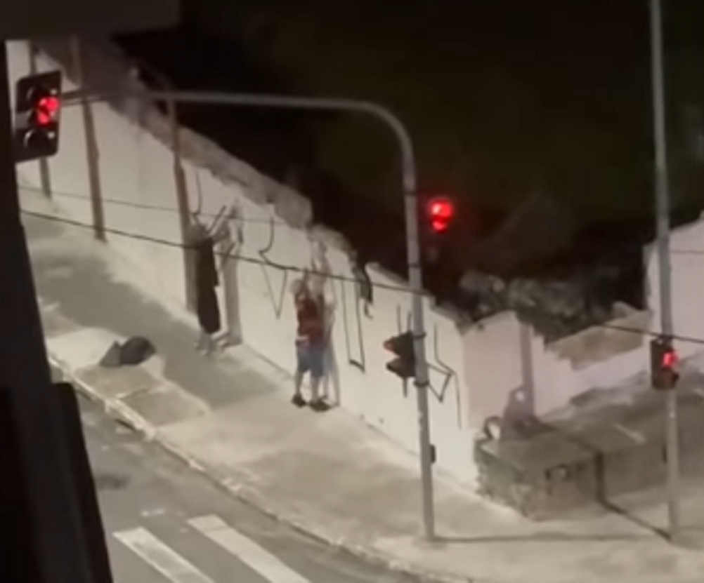 Na noite de terça-feira (25), por volta das 23h30, três rapazes foram flagrados pichando o muro na Rua Cristiano Angeli, no bairro Assunção, em São Bernardo. O local havia sido recentemente pintado, o que revoltou ainda mais os moradores.