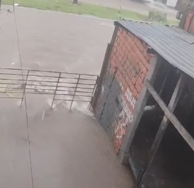 Uma seguidora do canal compartilhou um vídeo que mostra a forte chuva que atingiu Carapicuíba na tarde desta segunda-feira (27), causando alagamentos na Avenida CSU, próximo à garagem do Del Rey, na Vila Isa. A residência afetada pertence à irmã da seguidora.