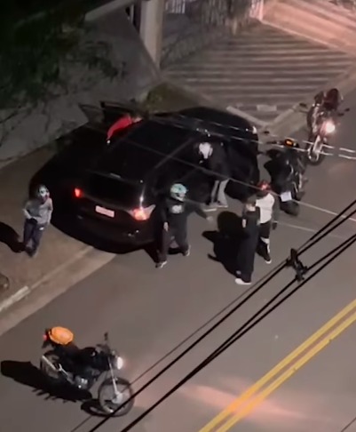 Um novo vídeo enviado ao nosso canal nesta quinta-feira (19/09) revela mais uma ação dos quatro criminosos em três motos, que realizaram um arrastão na noite de ontem (18/09) nos bairros Nova Petrópolis e Santa Terezinha, em São Bernardo do Campo. O vídeo mostra que, além das motos, um carro preto foi abordado e também se tornou vítima dos assaltantes.