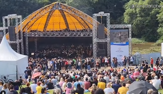 A Orquestra Sinfônica de Santo André, junto da banda U2 Ultraviolet Tribute, apresentou neste domingo (27/04) o espetáculo “U2 Sinfônico” no Parque Central. O concerto, com entrada solidária, celebrou os 472 anos da cidade e trouxe sucessos como “One”, “Sunday Bloody Sunday” e “Vertigo”.