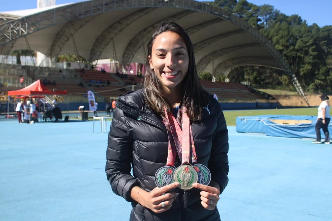 A atleta e moradora do bairro Ferrazópolis, em São Bernardo, Maria Luiza Silva, de 23 anos, conquistou na última segunda-feira (14) três medalhas em provas diferentes do atletismo na etapa de São Bernardo do Campo (1ª Região Esportiva) dos Jogos Regionais. Ela levou a medalha de prata nos 100 metros com barreiras, o ouro nos 100 metros rasos e fechou o dia com mais uma prata, dessa vez no revezamento 4×100 metros.