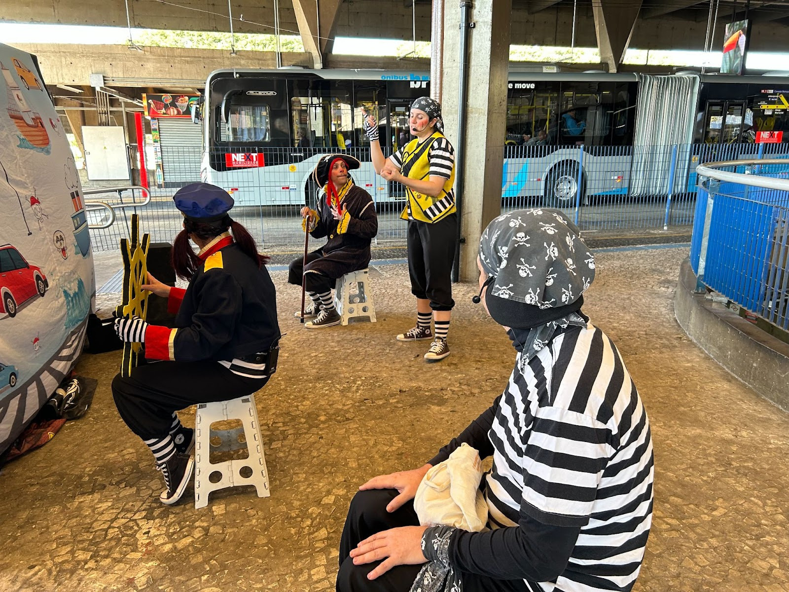 Nas encenações, quatro atores circulam pelo terminal demonstrando os conceitos de respeito ao pedestre, cidadania, travessia segura, observância do ponto cego, não olhar para o celular no momento da travessia, respeito a sinalização, como transportar a mochila, utilização do fone de ouvidos e respeito aos assentos e filas preferenciais.
